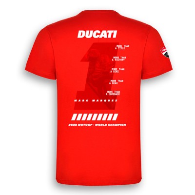 I’ve been waiting for the "9th Title" shirt, and this official 2025 World Champion tee is everything I hoped for. The design is bold, featuring the commemorative "World Champion" graphics and the iconic number 93 perfectly integrated with the Ducati red and gold accents.<br /> <br /> The cotton is surprisingly soft and high-quality—it doesn't feel like a cheap souvenir shirt. It has a great "true-to-size" fit that holds up well even after a few washes, and the screen printing is crisp and vibrant. Wearing this makes you feel like you're part of the garage crew in Valencia. Whether you're heading to a track day or just grabbing coffee, it’s the best way to show everyone who the king of MotoGP is.
