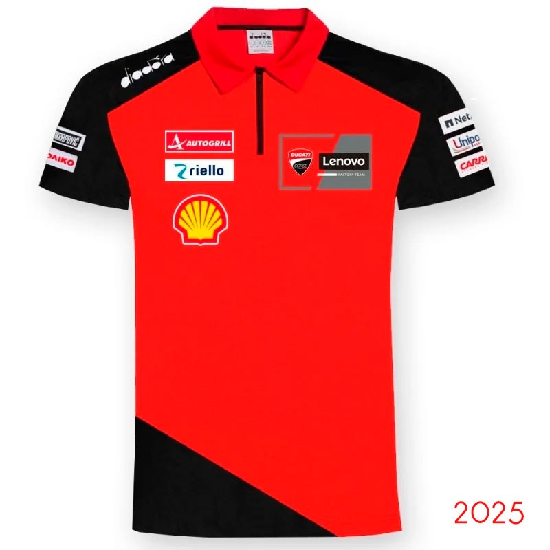Polo officiel Marc Márquez et Ducati MotoGP 2025. Fabriqué en 80% coton et 20% élasthanne , il offre confort et qualité premium. Design rouge et noir avec logo Ducati Corse et impressions de sponsors. Idéal pour les vrais fans de moto. 🏍️🔥
